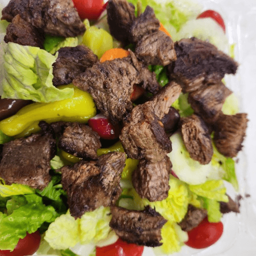 Lettuce, Cucumbers, Tomatoes, Green Peppers, Pepperocini, Olives, Carrots and Radish with Feta Cheese