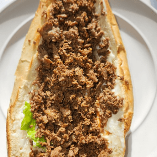 Submarine sandwich with steak and sausage. Options for medium or large size