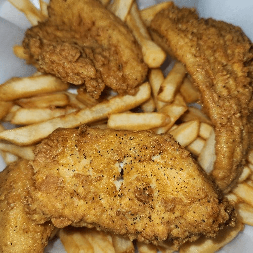 Comes With Fries , Calamari ,small side Salad and Tartar Sauce