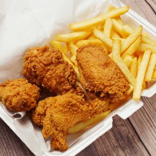 Chicken cutlet basket served with choice of Pepsi, Diet Pepsi, Brisk Iced Tea Lemon, Orange, Ginger Ale, or Mountain Dew can for free