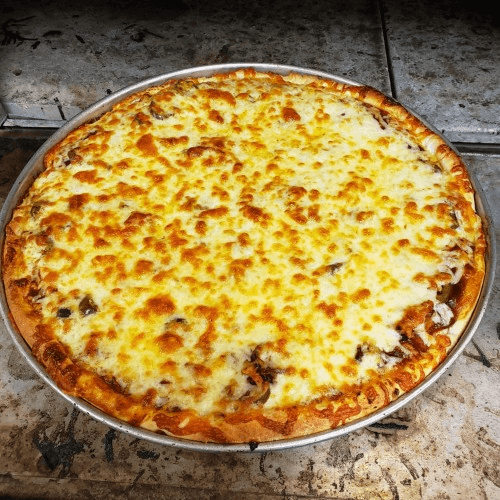 BBQ chicken, crispy bacon, drizzled ranch on a golden crust. Options: small, large