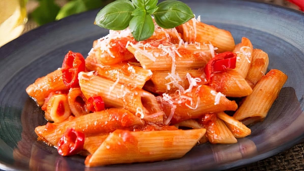 Penne with Marinara sauce and Mozzarella Cheese Backed in the oven comes with Garlic Bread
