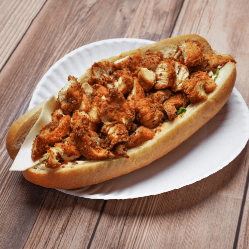 Grilled chicken in Buffalo sauce, served in a submarine sandwich. Medium or large